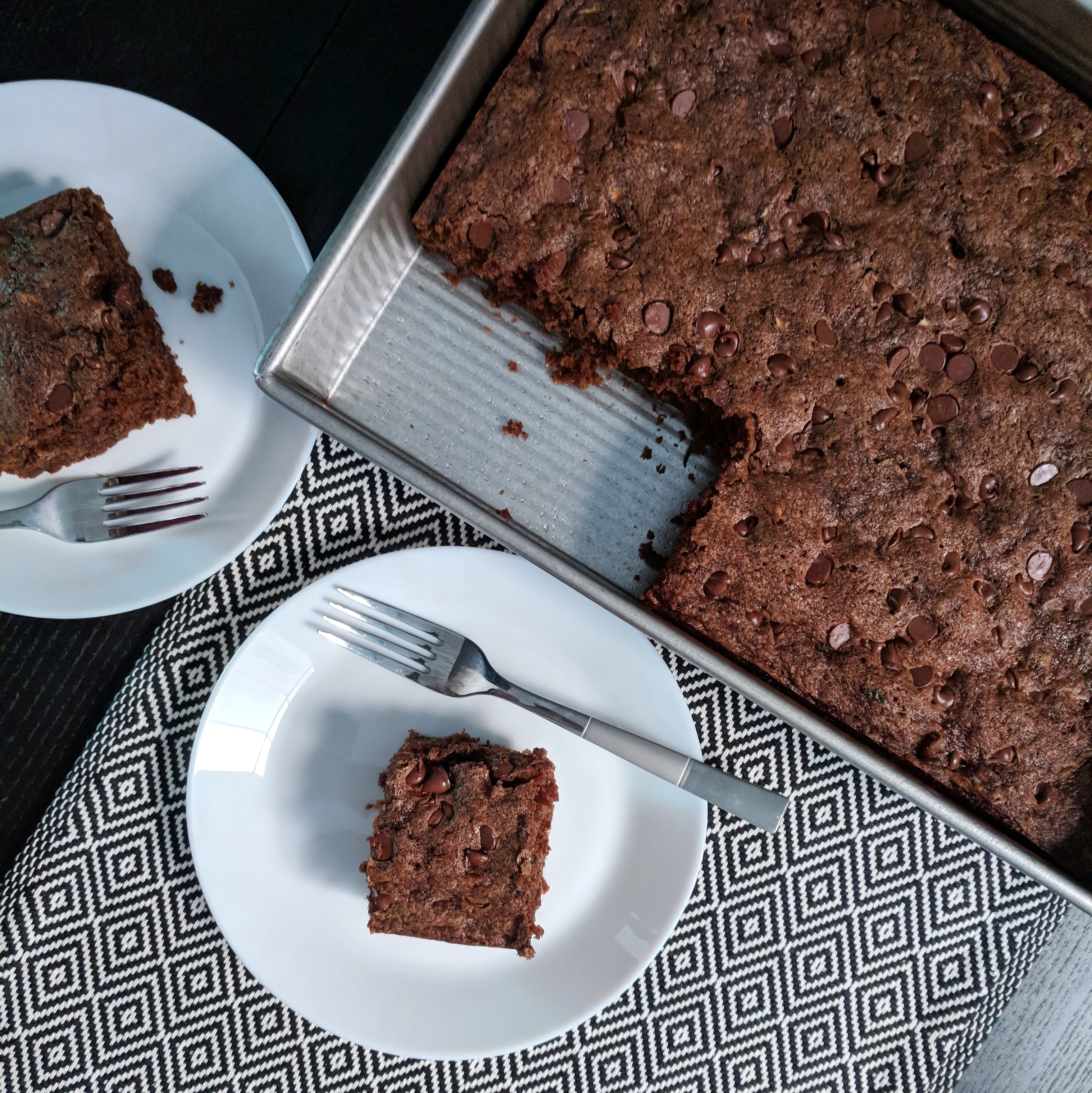 In this case, the zucchini isn’t really noticeable but helps keep the cake nice and moist. This is a lightly chocolatey cake—light enough that even I, the person who doesn’t like chocolate cake and thinks chocolate chip cookies would be better without chocolate chips, enjoy it.